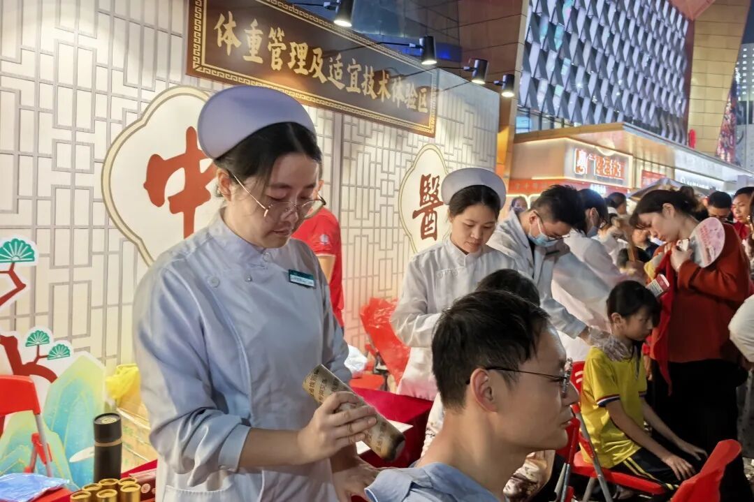 中医适宜技术体验区同样人气爆棚。我院设置的中医适宜技术和体重管理体验摊位前,市民排起长队,争相体验耳穴压豆、推拿拔罐、穴位敷贴、艾灸等中医适宜技术。
